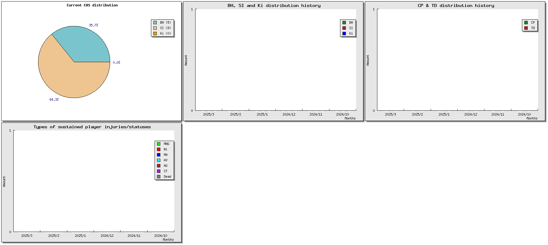 | # | Nom | Race | Valeur | W | D | L | GP | WIN% | SW | SD | SL | GF | GA | Td | Cp | Int | Cas | BH | Si | Ki | tcasf | tcasa | tcdiff | SMP | WT | ELO |